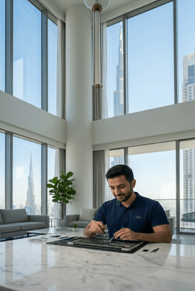Fast genuine-parts mobile & laptop repair. Free pickup & delivery in 50+ Dubai areas. On-site service across all 7 emirates.